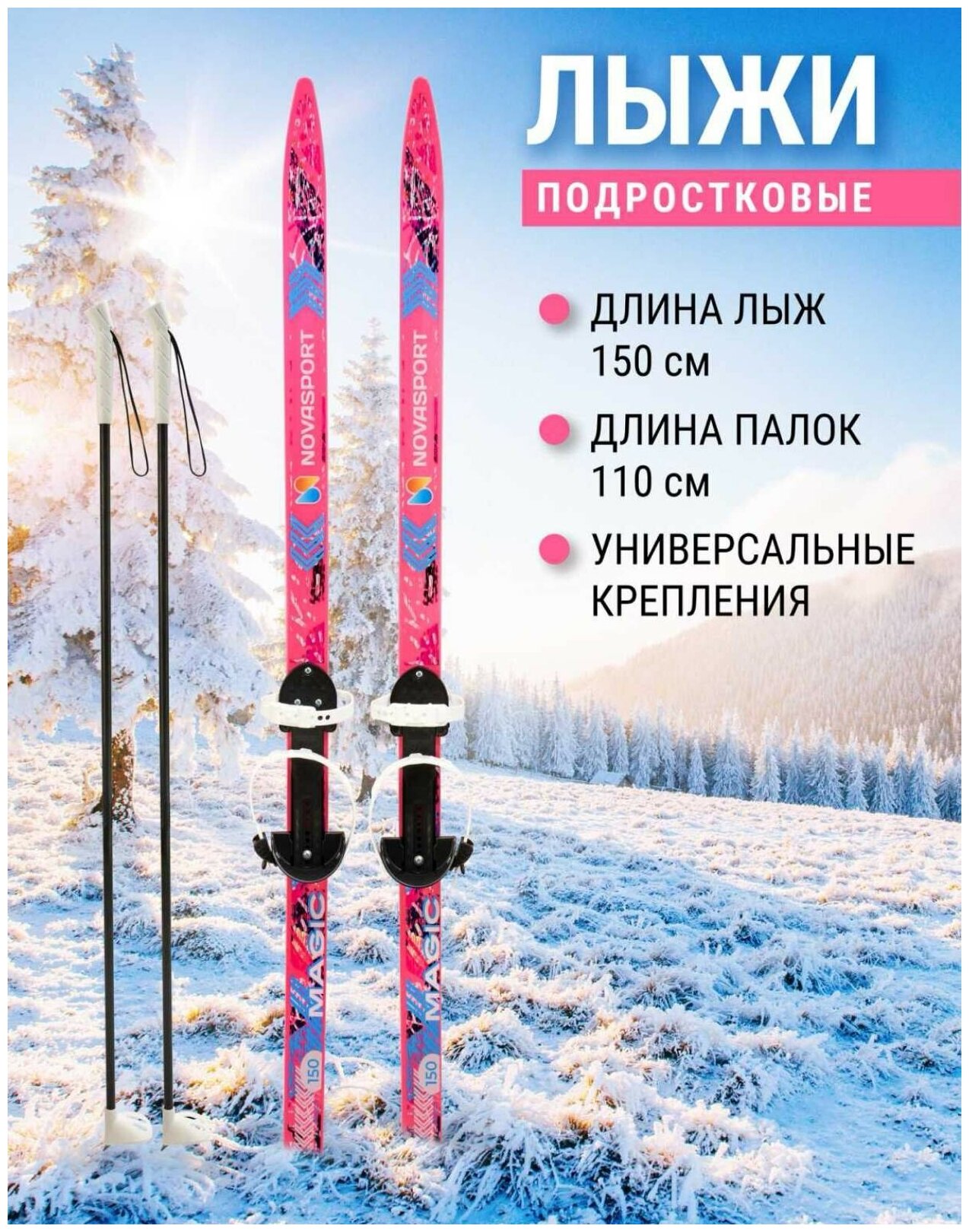 Лыжи Лыжный комплект подростковый 150 см NovaSport Magic с универсальным креплением и палками 110 см
