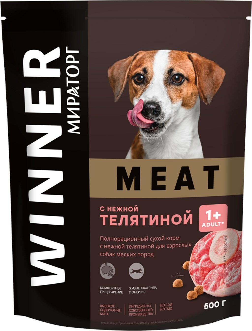 Корм для собак Сухой корм Мираторг MEAT, нежная телятина, 8 упаковок х 500 г, для взрослых собак мелких пород, старше 1 года