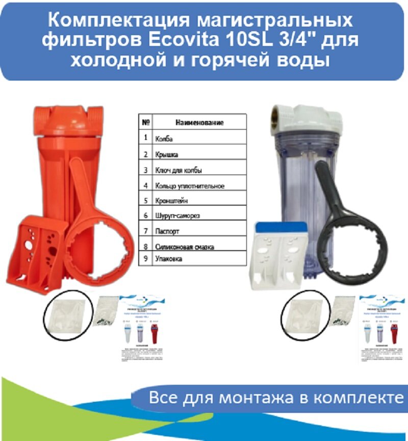 Фильтры для воды Комплект магистральных фильтров Ecovita Оптимум 10SL 3/4" для холодной и горячей воды