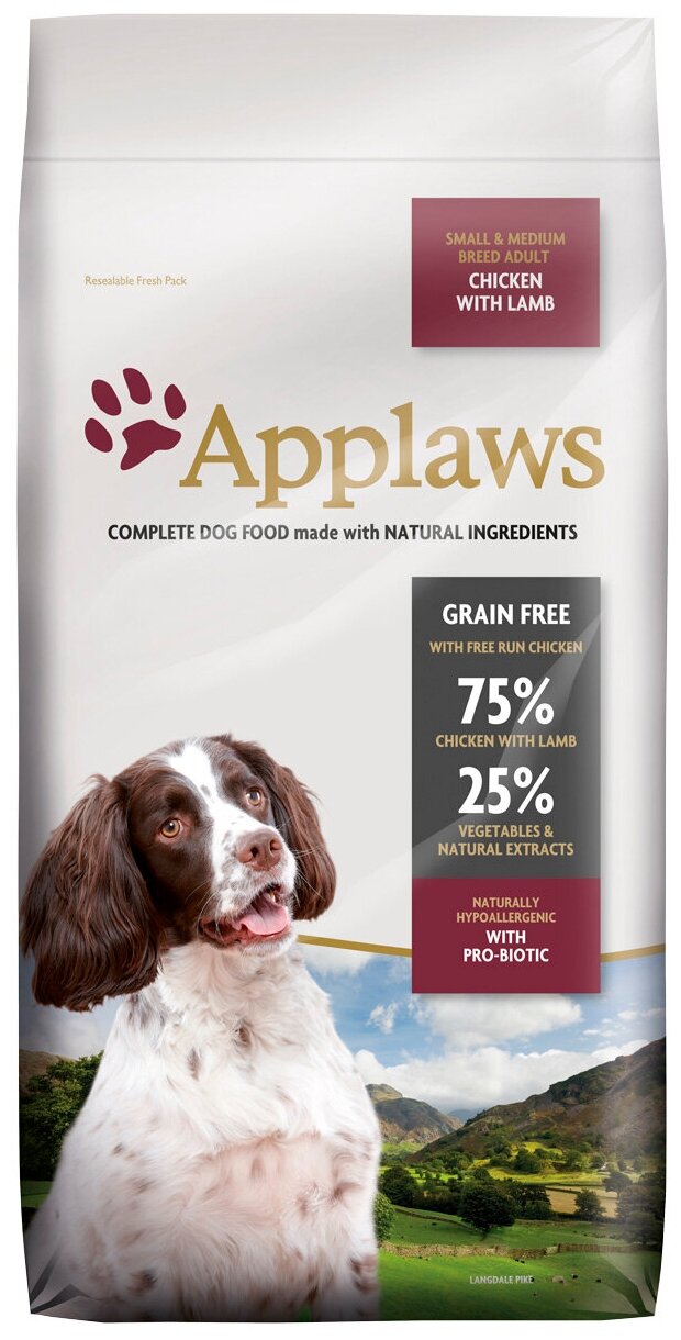 Лучшие цены. Сухой корм для Собак Applaws Adult Small & Medium Breed подходит для мелких и средних пород и содержит не менее 75% мяса (Курица и Ягненок), а также 25%, что делает данный продукт приближенным к естественной диете. В корме не содержаться искусственные красители, ароматизаторы или консерванты. Активный пробиотик стимулирует пищеварительную систему и защищает ЖКТ. Для производства используются только натуральные ингредиенты высочайшего качества. Магазины в вашем городе.