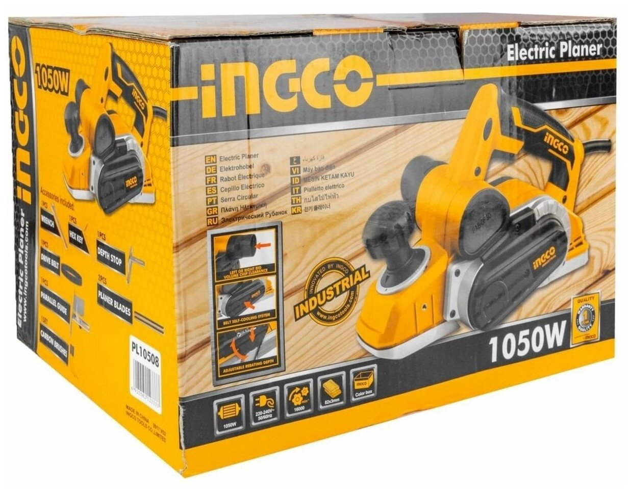 Рубанок 1050ВТ 16000 Об.мин.глуб.строг.0-3мм НОЖ 82ММ ВЕС 2КГ Ingco PL10508 Профи