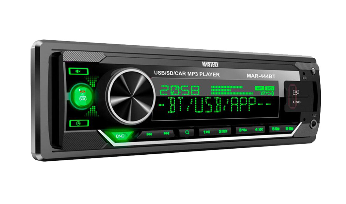 Автомобильная магнитола MYSTERY MAR-444BT Bluetooth, USB, AUX, мультицветная подсветка