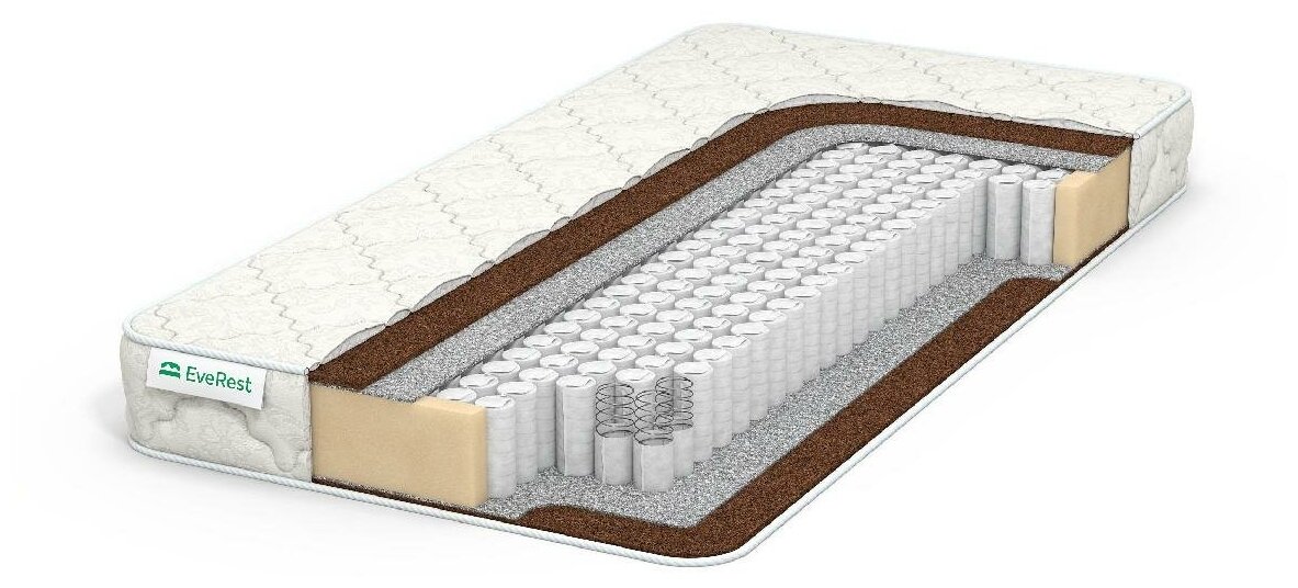 Матрас Everest Хард Кокос 1 TFK - пружинный независимый, 500 пружин на место, кокосовый, жаккардовый чехол, высота 17 см 95х210 16 621 ₽ Подробнее