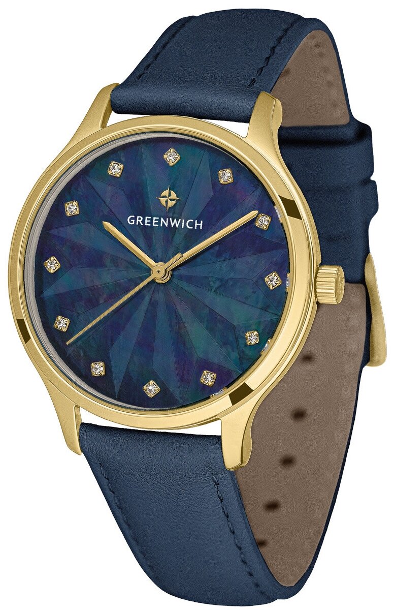 Лучшие цены. Женские кварцевые часы в золотистом корпусе на кожаном ремешке. Романтика дальних странствий, любовь к морским путешествиям, извечное стремление человека к познанию неизведанного и к прекрасному вдохновили британских дизайнеров на создание удивительных по красоте коллекций часов GREENWICH. Логотипом часов GREENWICH служит стилизованное изображение «розы ветров». Считалось, что татуировка с «розой ветров» приносила её хозяину удачу, помогала не сбиться с пути, дойти до цели и вернуться живым домой. Магазины в вашем городе.