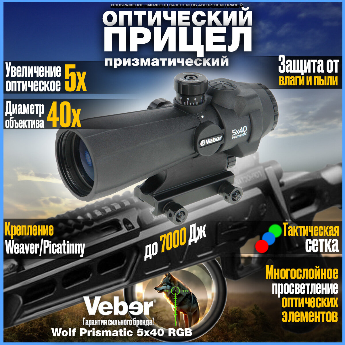Прицелы Прицел оптический Veber Wolf Prismatic 5х40 RGB