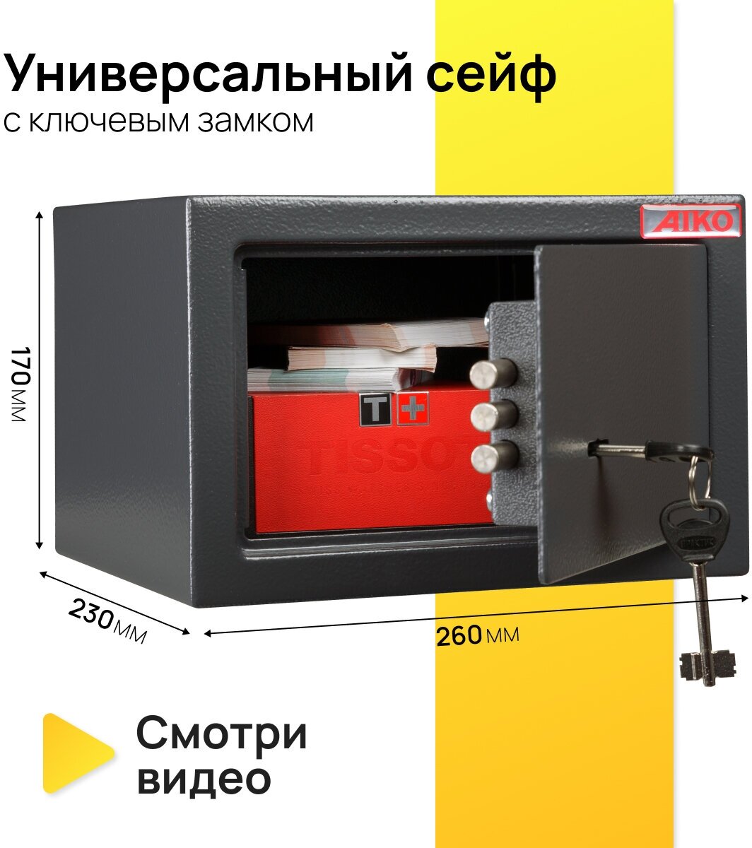 Сейфы Сейф мебельный AIKO "T-170 KL", 170х260х230 мм, 5 кг, ключевой замок, крепление к стене