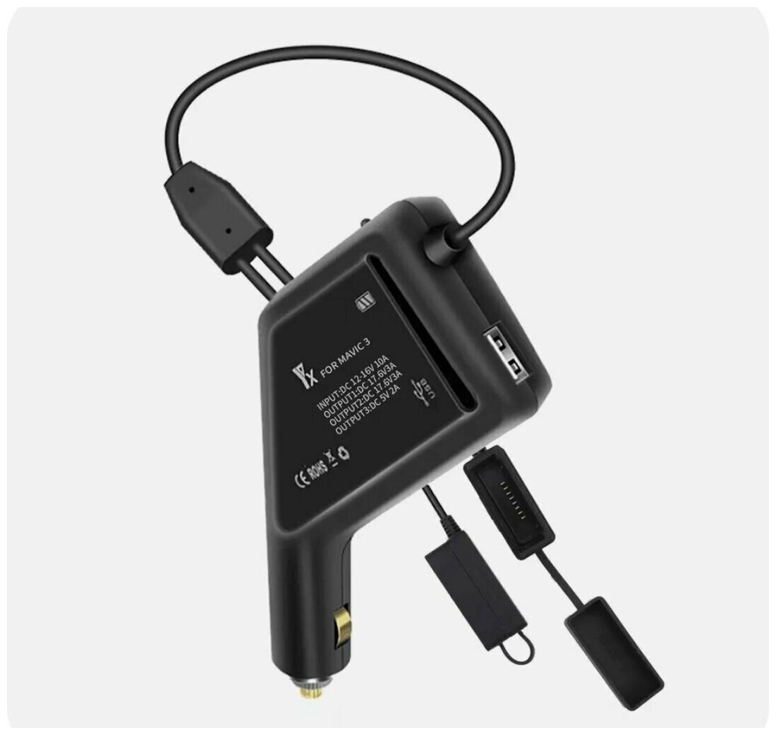 Квадрокоптеры (дроны) Автомобильное зарядное устройство DJI Mavic 3 для дрона, квадрокоптера, мавик