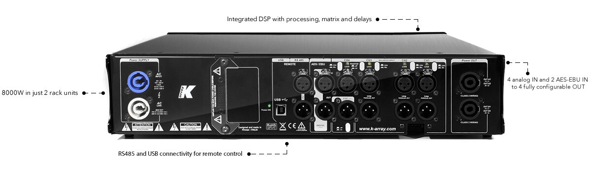 KA84 / Усилитель мощности класса D с DSP, 4 x 2000 Вт / 4 Ω, 4 x 1000 Вт /8 Ω, 2 x 4000 Вт / K-ARRAY