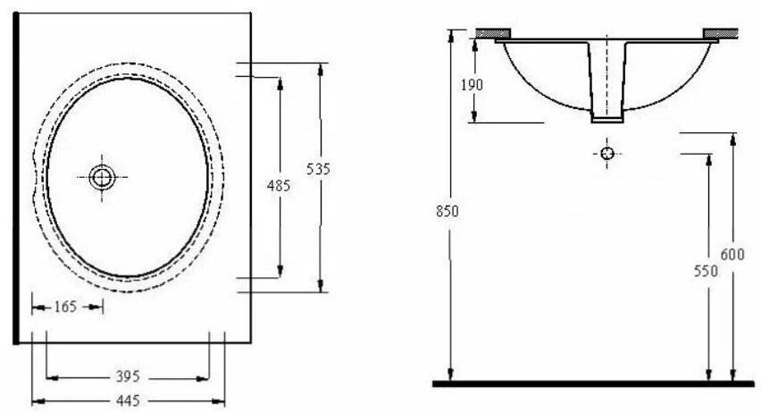 Раковина встраиваемая снизу (53,5х44,5) beWash Balaton 91531001