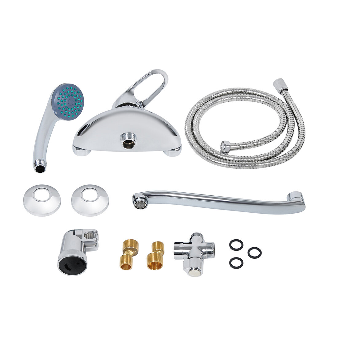 Смесители Смеситель/кран для ванны/душа (однорычажный, поворотный с длинными (27 см) изливом и лейкой, хромированный, латунный) SMART SM403-06