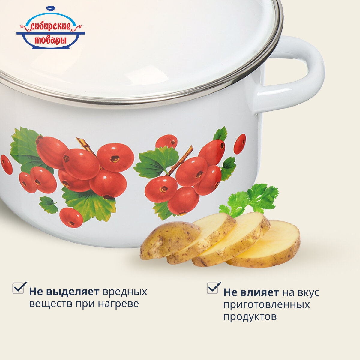 Кастрюли Кастрюля сталь, эмалированное покрытие, 2 л, с крышкой, Сибирские товары, Калина красная, 1MD161M