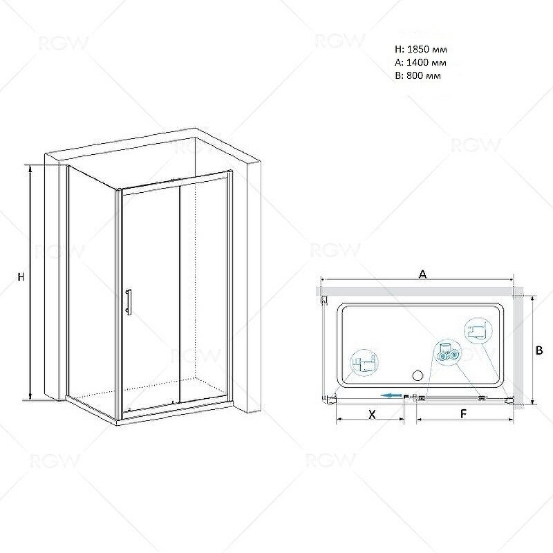 Душевой уголок RGW PA-145 80х140х185 стекло прозрачное