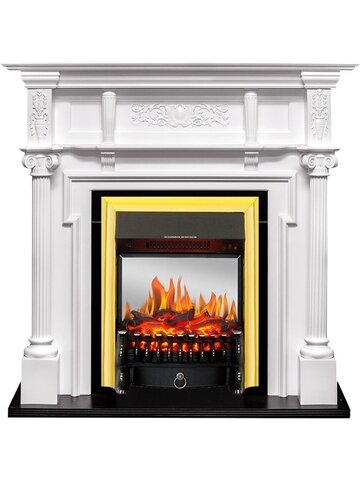 Лучшие цены. Электрический камин Royal Flame Oxford (белый) с очагом Fobos FX M Brass. Пристенный каминный портал Oxford выполнен в благородном белом цвете с добавлением контрастного оттенка в зоне очага и основания. Габаритный размер (ВхШхГ). 1165 х 1170 х 375 мм. Материал корпуса МДФ, натуральный шпон. Страна производства портала Россия. Электрический очаг Fobos FX M Brass выполнен в классическом стиле. Данная модель представлена в эффектном золотом цвете. Магазины в вашем городе.