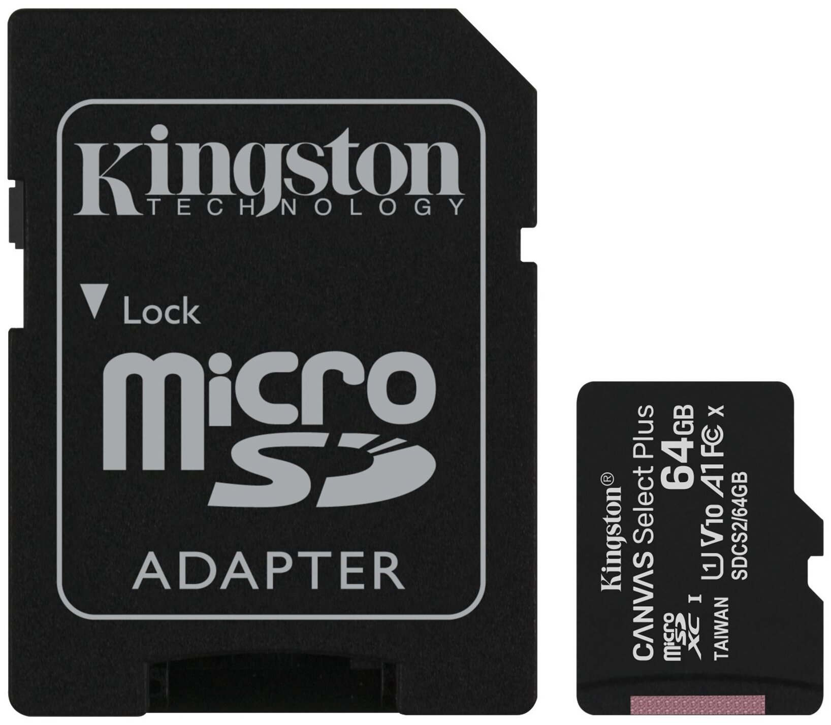Карта памяти Kingston microSD 64 ГБ Class 10 Canvas Select Plus