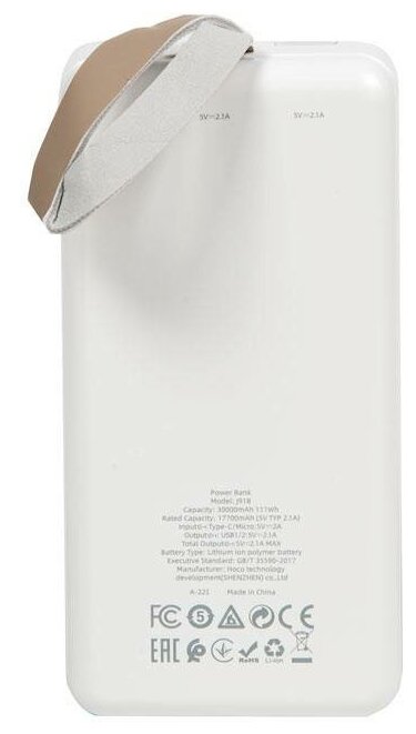 Портативный аккумулятор HOCO J91B, 2.1A, 30000 мА⋅ч, белый, светодиодный индикатор