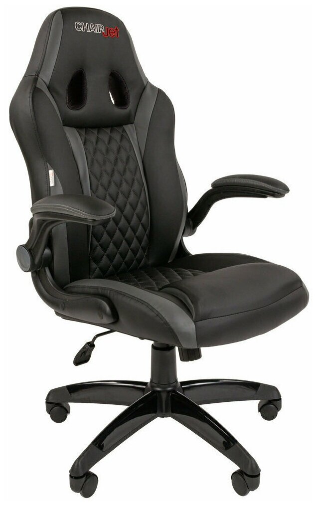 Компьютерные кресла Игровое компьютерное кресло CHAIRJET GAME 15 с матовыми подлокотниками, экокожа, черный/серый
