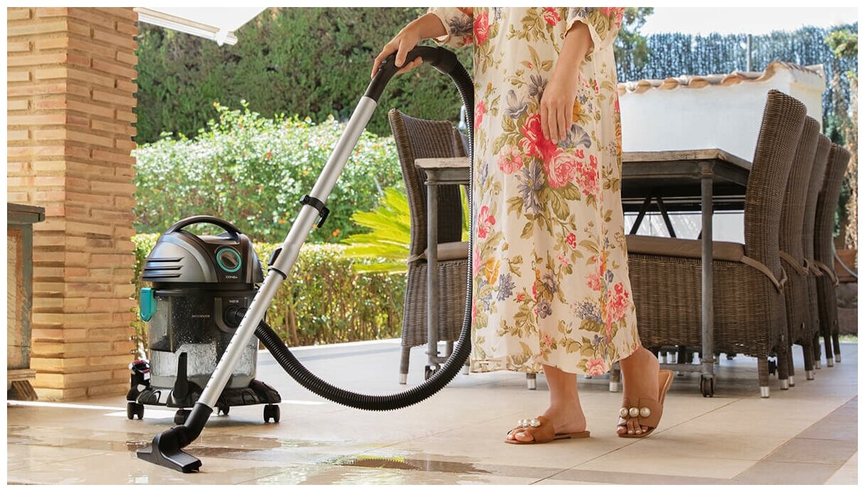 Лучшие цены. Пылесос Cecotec Conga Wet & Dry TotalClean собирает не только мусор, но даже воду. Также пылесос имеет функцию выдува воздуха, чтобы, например, убрать листья с дорожки загородного дома. Помимо этого во время работы пылесос очищает воздух от мелкой пыли и аллергенов с помощью специального фильтра. Комфорт во время уборки обеспечивает радиус действия 7 метров, 15-литровый вместительный бак и низкий уровень шума 69 дБ. Для очистки любых поверхностей пылесос оснащен большим набором насадок. Магазины в вашем городе.