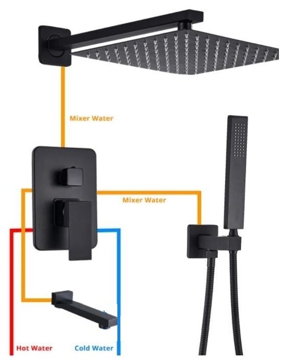 Душевые системы Mixxus KUB-009 BLACK inner box Душевая система чёрного цвета (встраиваемая) из нерж. стали SUS304(G7117-6)