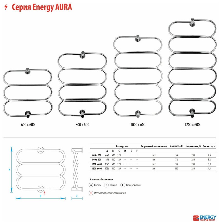 Полотенцесушители Электрический полотенцесушитель Energy Aura 1200x600