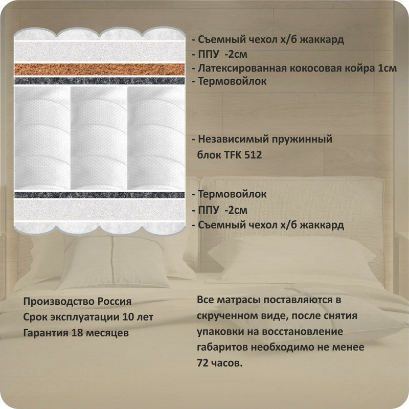Анатомический матрас Albero Optima, Независимые пружины, 150х190 см 25 218 ₽ Подробнее