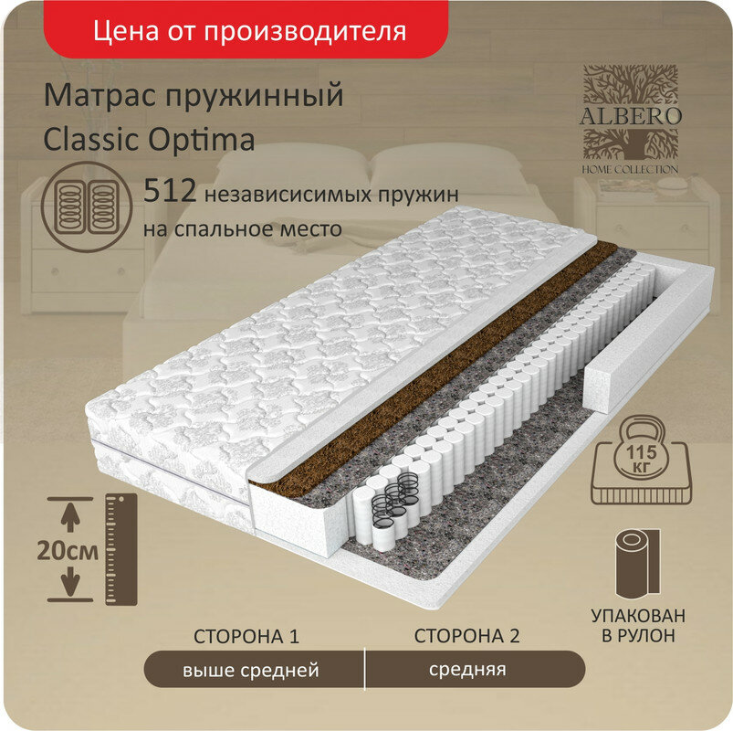 Матрасы Анатомический матрас Albero Optima, Независимые пружины, 150х195 см