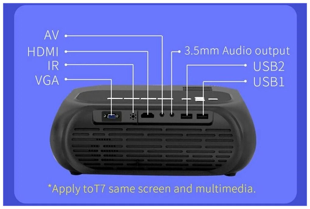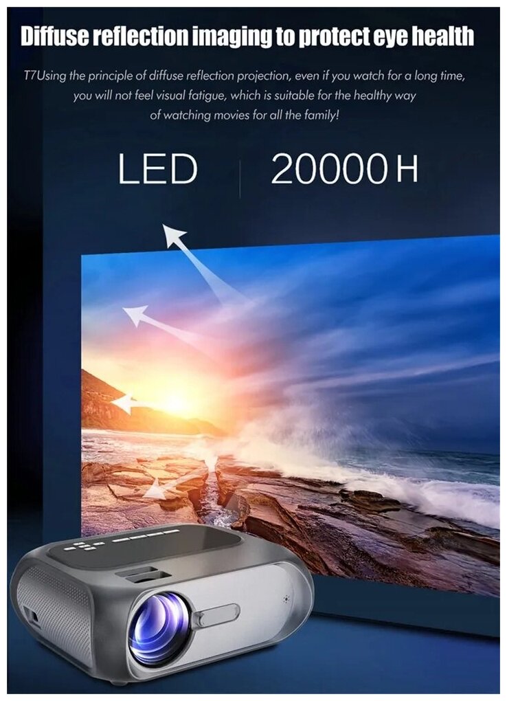 Проекторы Светодиодный проектор T7A Full HD 1080P, 4000 лм, портативный проектор