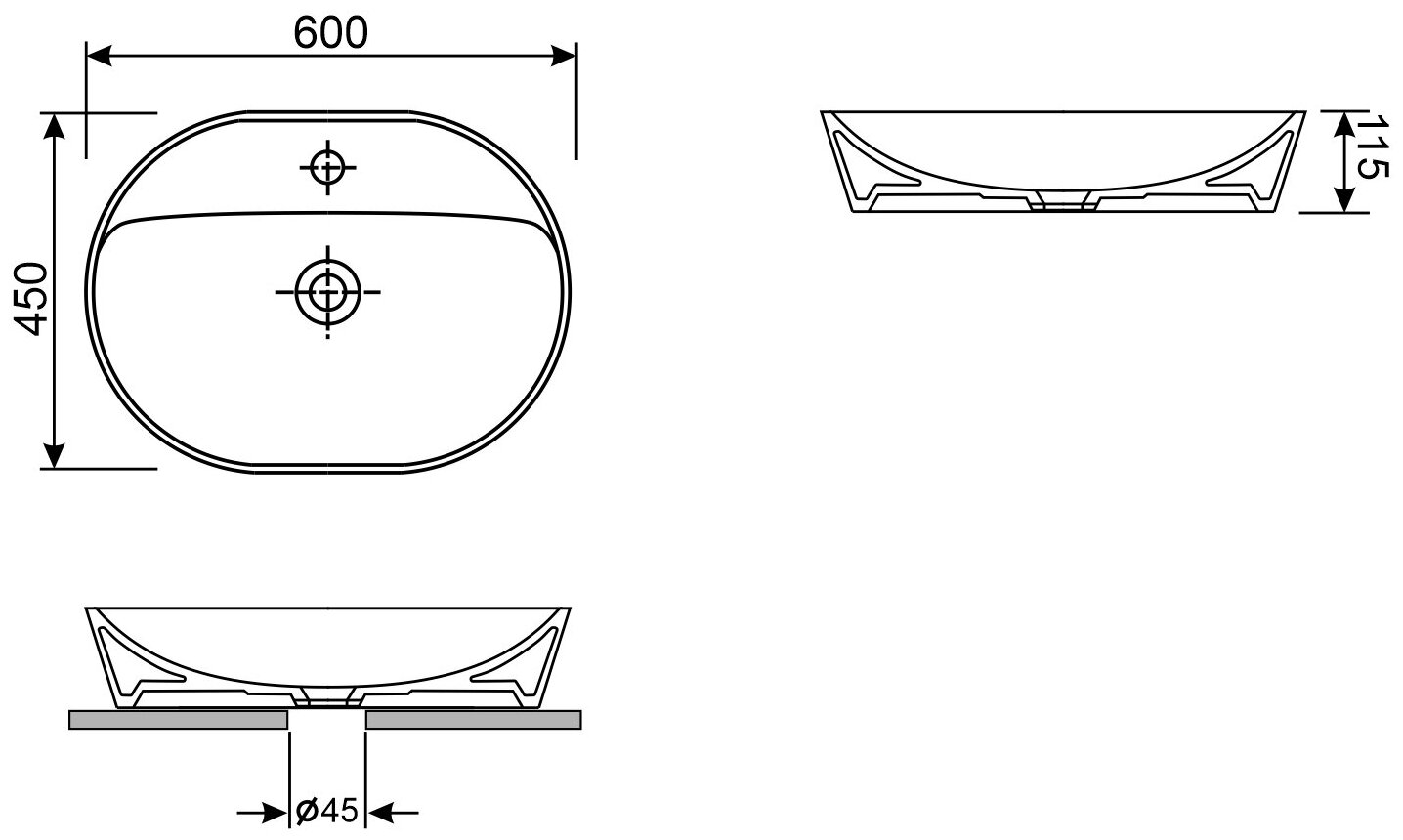 Умывальник Промо-набор 2 в 1 Wellsee Calin 150202001, накладные раковины 2 шт, ширина одного умывальника 60 см, цвет матовый черный