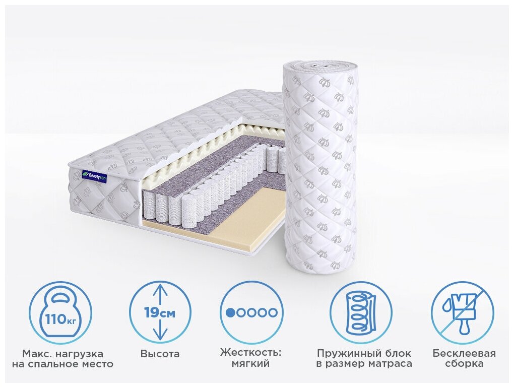 Матрас анатомический пружинный BeautyRoll спринг Массаж ЭкоЛатекс 2 S600 100x195, односпальный, без клея и запаха, поставляется в рулоне