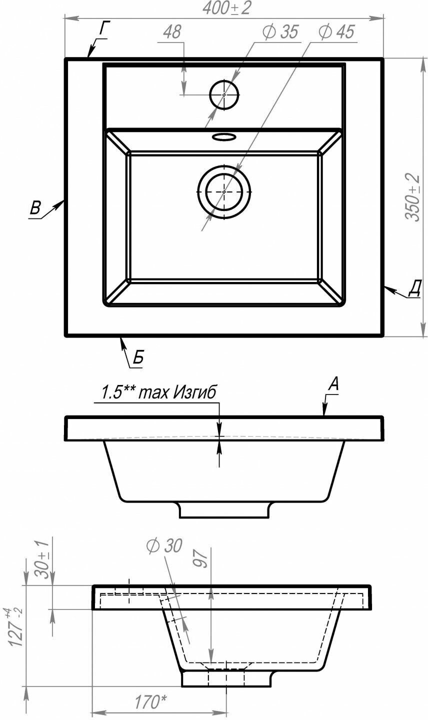 | Материал умывальника | искусственный камень |