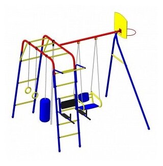 Лучшие цены. Характеристика Бренд: Пионер Страна происхождения: Россия Способ установки: цементируются «стаканы» Материал: металл Высота: 2,00 м Занимаемая площадь: 2,00 х 2,30 м Диаметр трубы: 38 мм Толщина металла: 1,5 мм Диаметр ступени: 25 мм Ширина ступени: 0,49 м Шаг ступени: 0,26 м Тип ступени: металл Допустимая нагрузка: 100 кг Допустимая нагрузка на навесное оборудование: 50 кг Комплектация: канат, кольца, груша, качели, навес для пресса, баскетбольный щит Вес комплекса: 50 кг Упаковка: картонная коробка. Магазины в вашем городе.