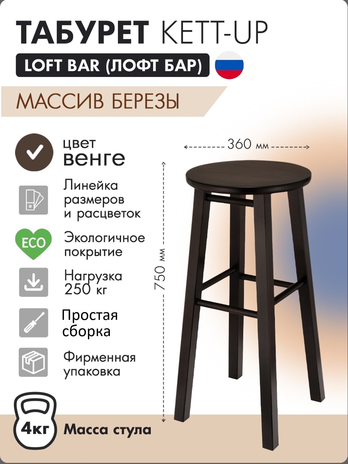 Табурет KETT-UP LOFT BAR барный, 75см, KU085.9, деревянный, сиденье круглое, лак, цвет орех 4 410 ₽ Подробнее