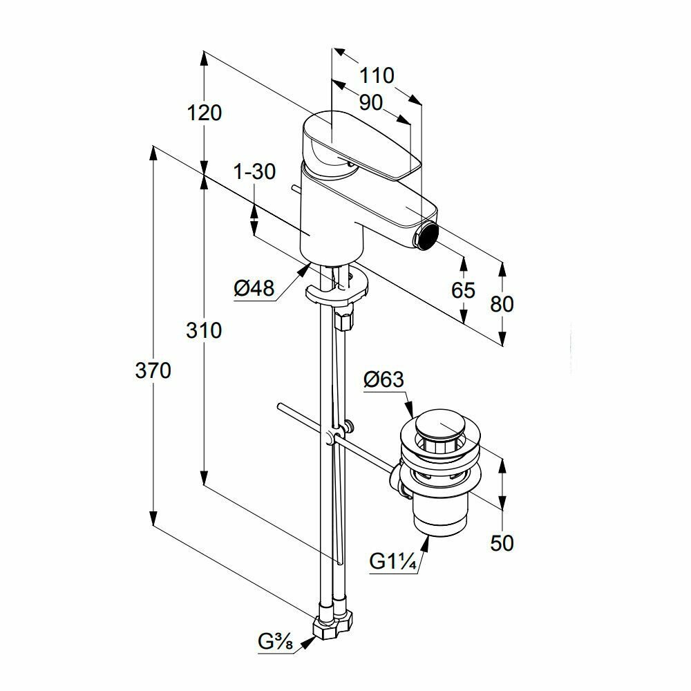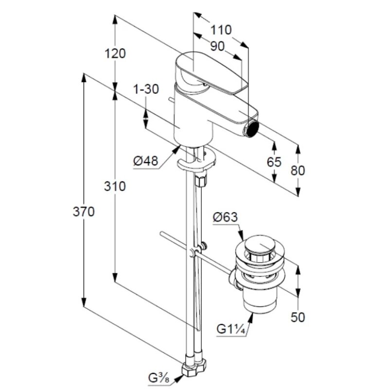 Смеситель для биде Kludi Pure&Solid, арт. 342160575, с донным клапаном