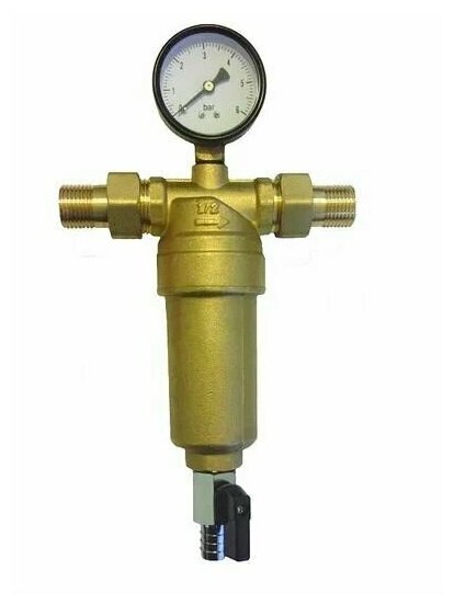 Фильтр для воды самопромывной с манометром, с редуктором 1/2" VASCO (8802), для горячей воды