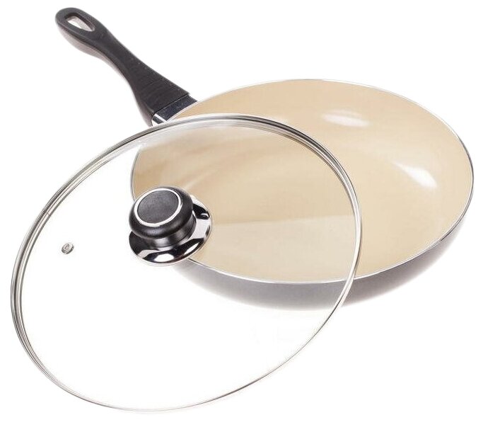 Лучшие цены. Тип: универсальная сковорода; Материал: штампованный алюминий; Форма: круглая; Индикатор нагрева: нет; Ручки: 1 длинная; Материал ручки: бакелит; Съемные ручки: нет; Крышка: стеклянная. Магазины в вашем городе.