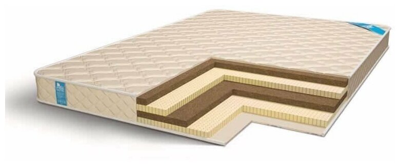 Лучшие цены. Высота 12 см. Уровень жесткости жесткий/средний. Латексированное кокосовое волокно 3 см, натуральный латекс 3 см, латексированное кокосовое волокно 3 см, натуральный латекс 3 см. Съемный/несъемный чехол из хлопкового жаккарда, простеган на холлконе. Максимальный вес на 1 спальное место 140 кг. Магазины в вашем городе.