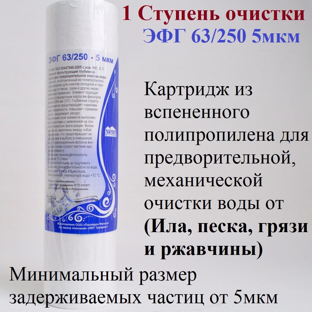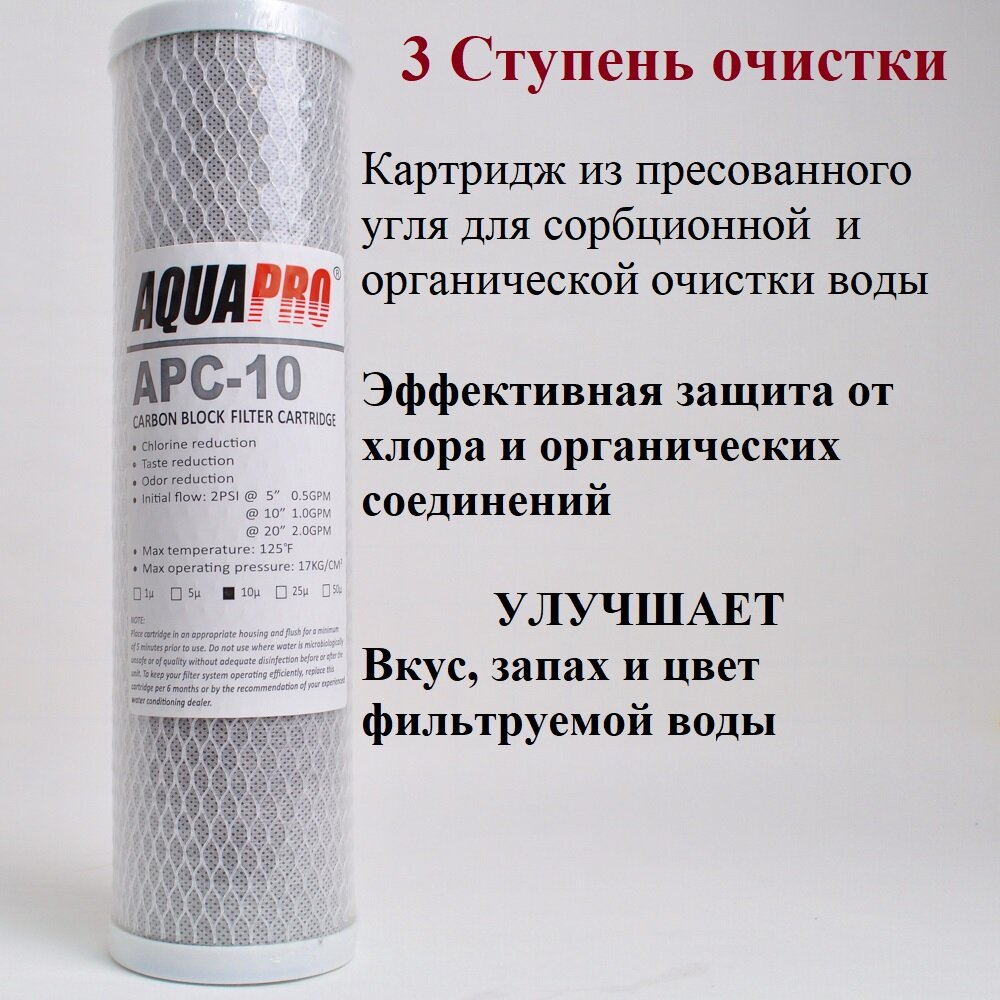 Картридж для воды Комплект картриджей AquaPro Осмо Улучшенный 1-3 ступени ЭФГ63/250-5,UPF10C,APC10
