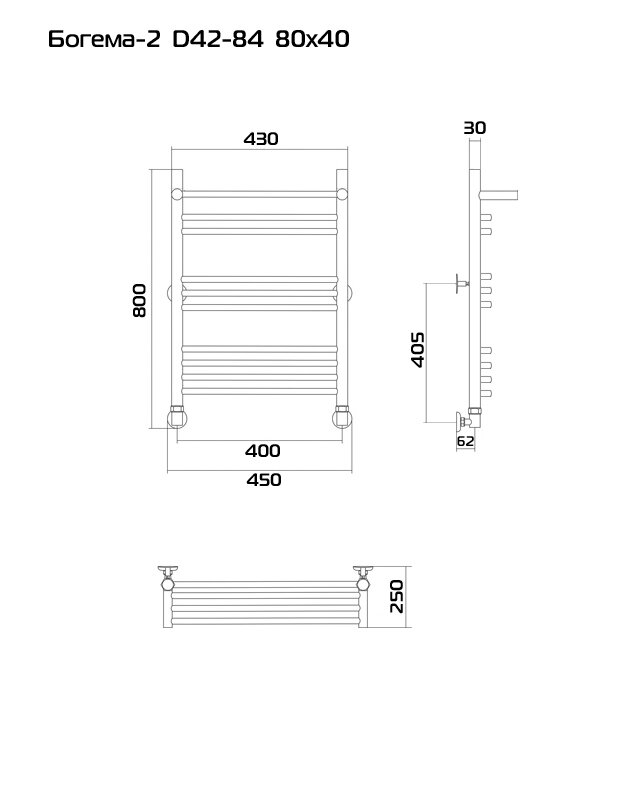Полотенцесушитель Богема-2 80х40 Водяной полотенцесушитель D42-84