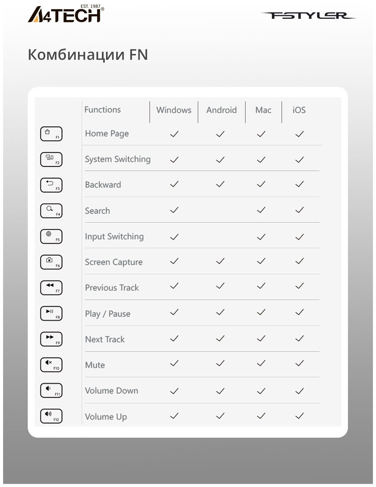 Клавиатура A4Tech Fstyler FBK11 Grey
