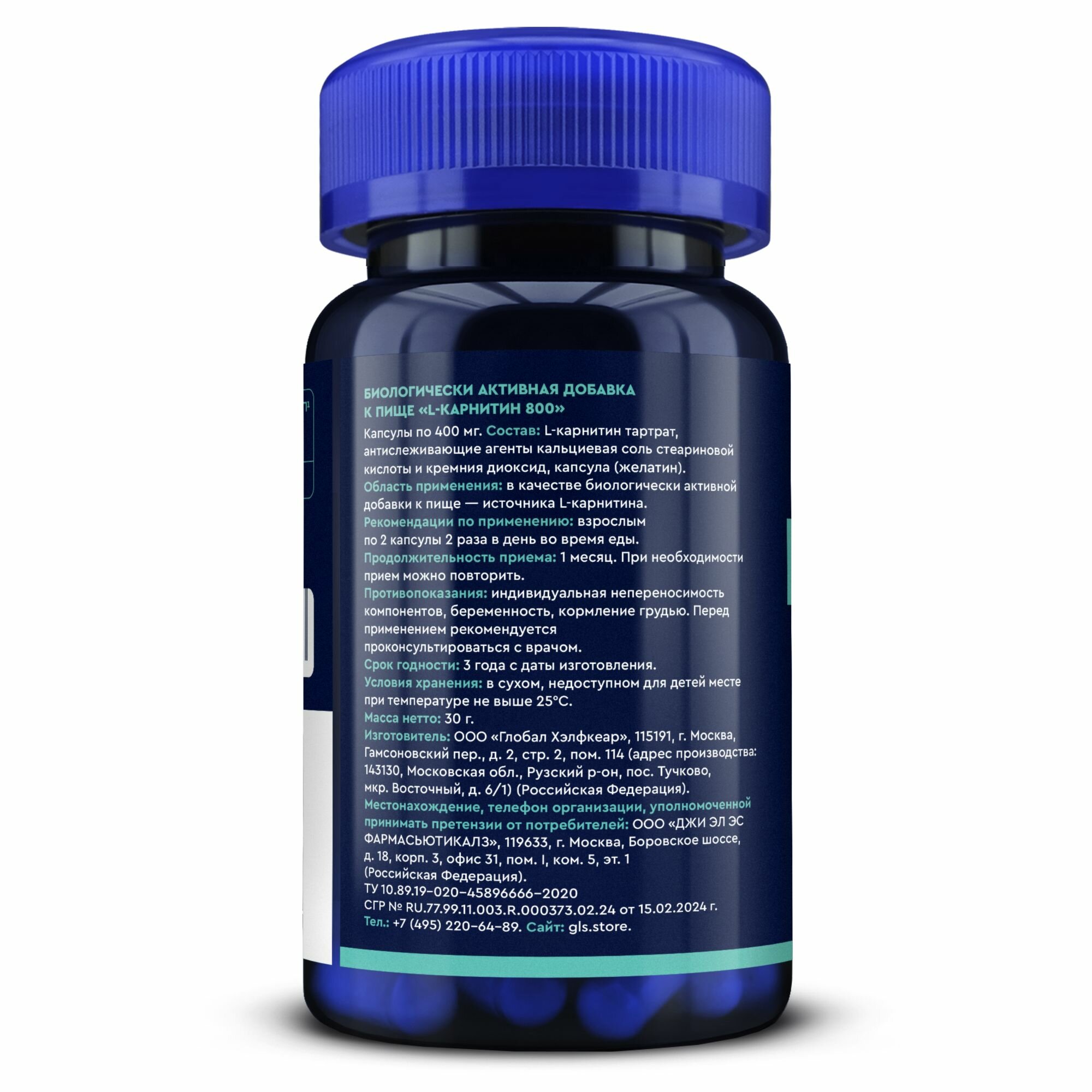 GLS Pharmaceuticals L-Карнитин 800, жиросжигатель для похудения, 60 капсул по 400 мг