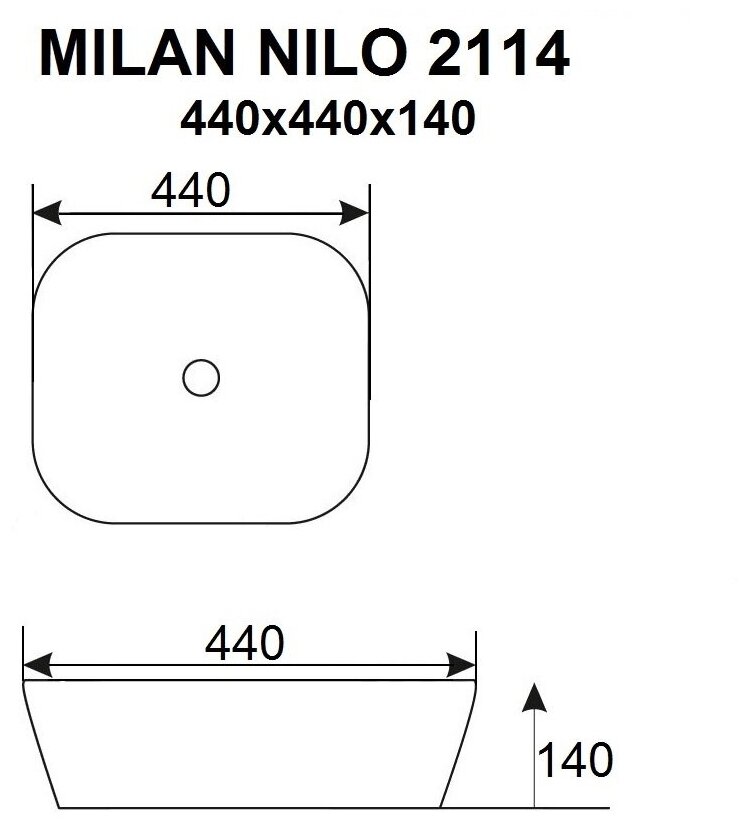 Умывальник Раковина на столешницу Nilo2114, размер 440x440x140 мм. Материал фарфор, цвет белый, антигрязевое покрытие.