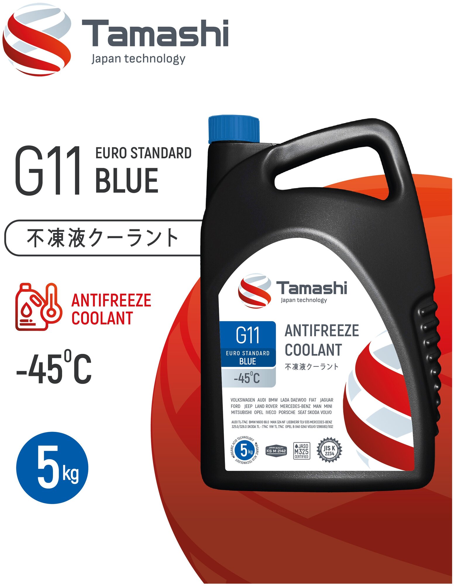 Антифриз TAMASHI G11 EURO STANDARD BLUE, 5кг, синий, готовый, до -45°C TAMASHI / арт. AFTB5 - (1 шт)