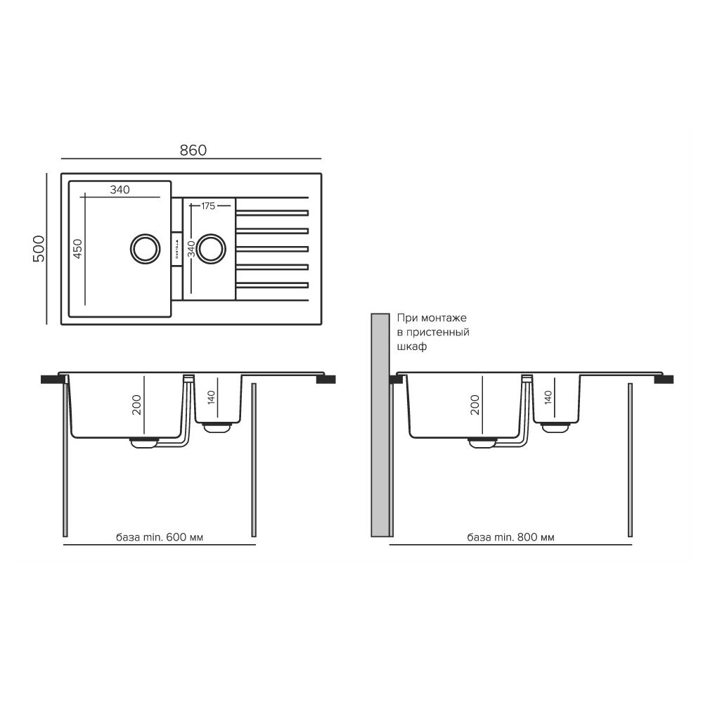 | Минимальная ширина шкафа (базы) | 600 мм |