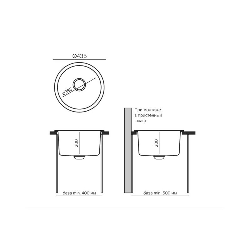 Мойка для кухни TOLERO Classic R-104 круглая каменная Кварц с возможностью нижней подклейки (№911 Черный)