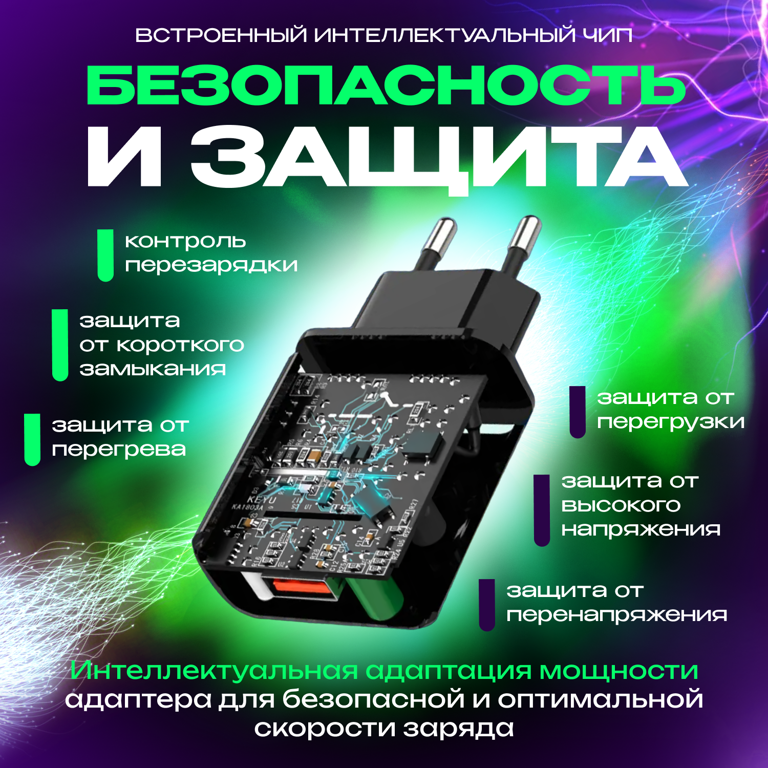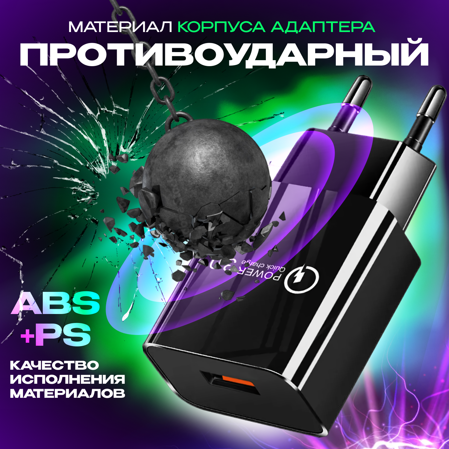 Зарядки для гаджетов Быстрая зарядка для телефона Quick Charge 3.0, 18W, 3A / Сетевой блок питания для Samsung, Xiaomi, Huawei, iPhone /черный цвет