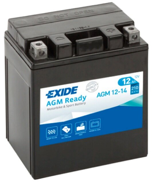 Автоаккумулятор Аккумулятор для мотоцикла и скутера Exide AGM12-14 12 А/ч 210 А обр. пол. залит/заряжен (134х89х164) YTX14AHL-BS