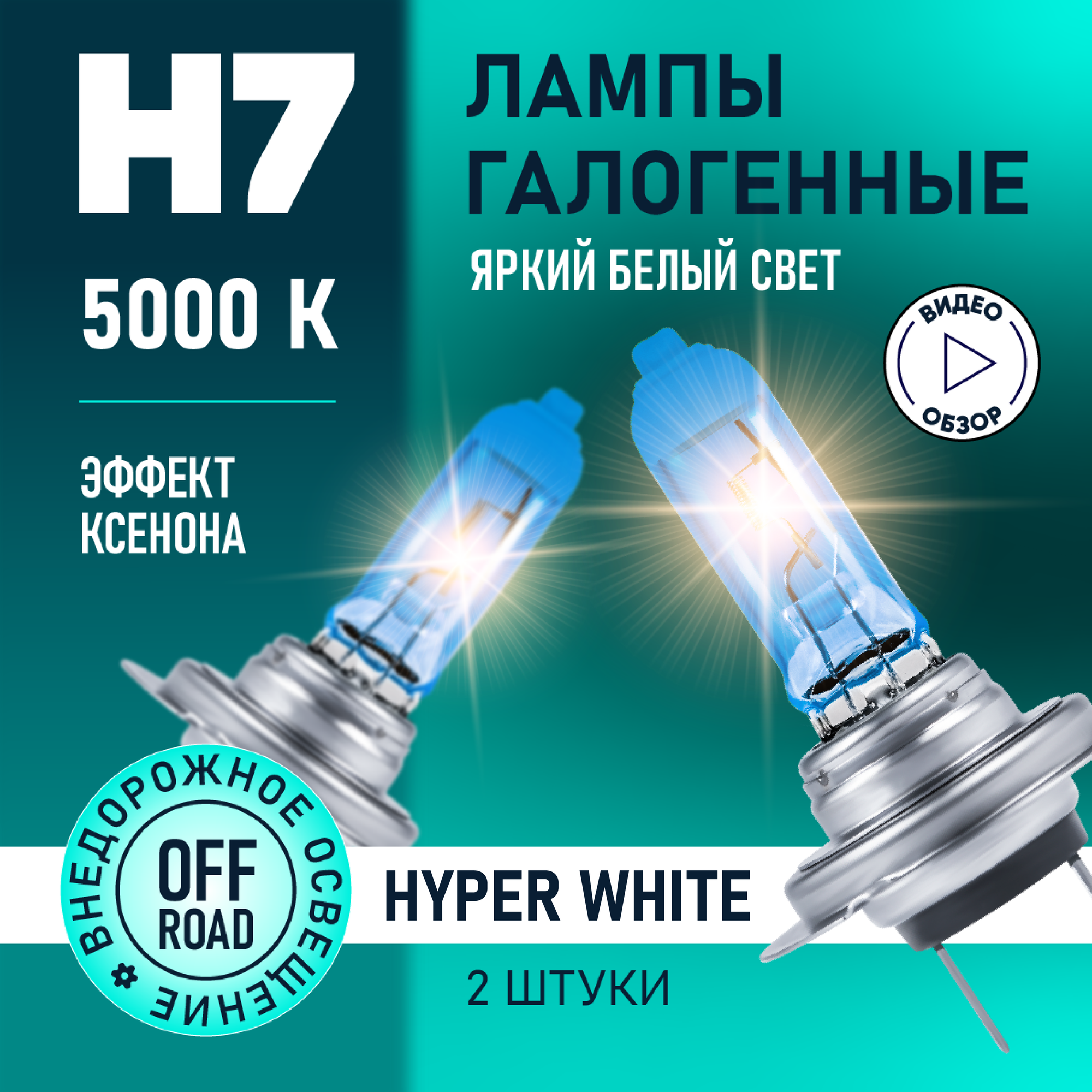 Автолампы Автомобильные лампы галогенные H7 Hyper White восход, 5000K 12В 55Вт, 2 шт.
