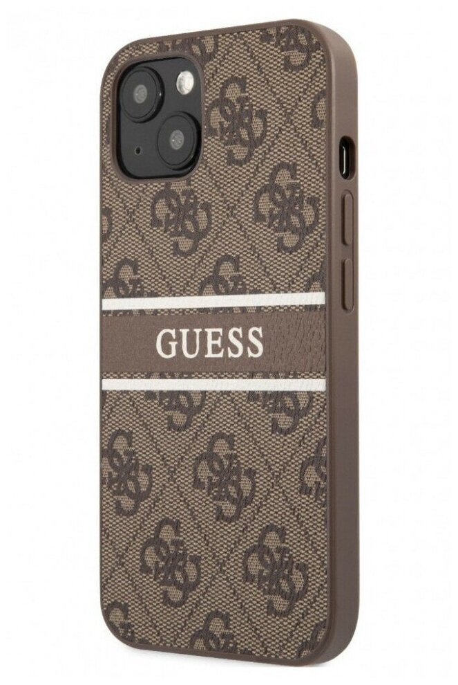 Чехлы для мобильных телефонов Чехол Guess 4G PU LEATHER WITH PRINTED STRIPE для iPhone 13 mini, коричневый