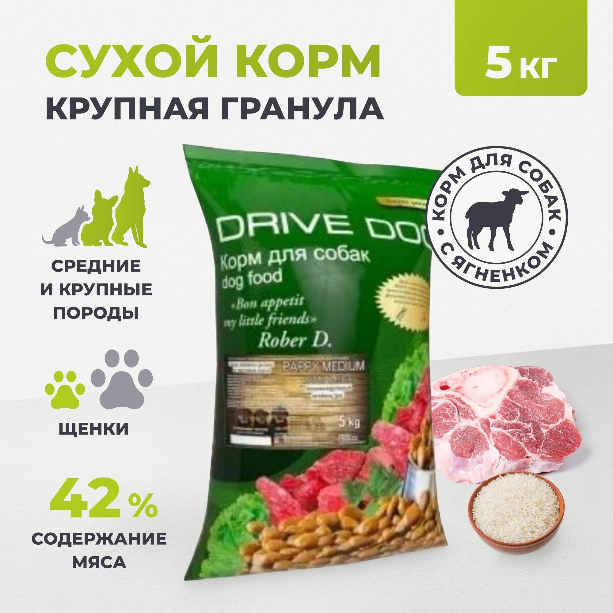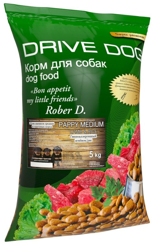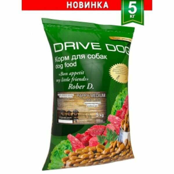 Корм для собак DRIVE DOG Puppy Medium полнорационный сухой корм для щенков средних и крупных пород ягненок с рисом 5 кг