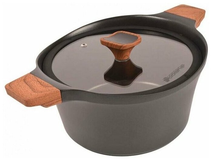 Лучшие цены. Кастрюля изготовлена из высококачественного литого алюминия.\nВнутреннее высокопрочное трехслойное антипригарное покрытие Whitford QuanTanium на основе титана обеспечивает непревзойденную стойкость к царапинам.\nМожно использовать металлические лопатки.\nСпециальное утолщенное дно 5 мм обеспечивает быстрый и равномерный нагрев посуды…\nВсе описание\nИзделие Кастрюля\nМатериал Литой алюминий\nРазмер/диаметр, см 24\nТолщина стенок, мм 2-3\nТолщина дна, мм 5\nОбъем, л 4.3\nПокрытие 3-х слойное высокопрочное. Магазины в вашем городе.