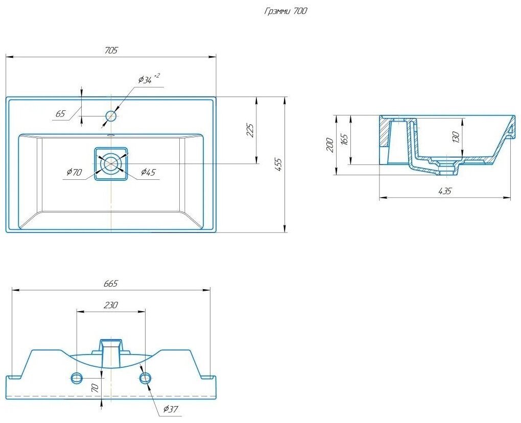Умывальники Раковина для ванной Valleri Грэмми 70